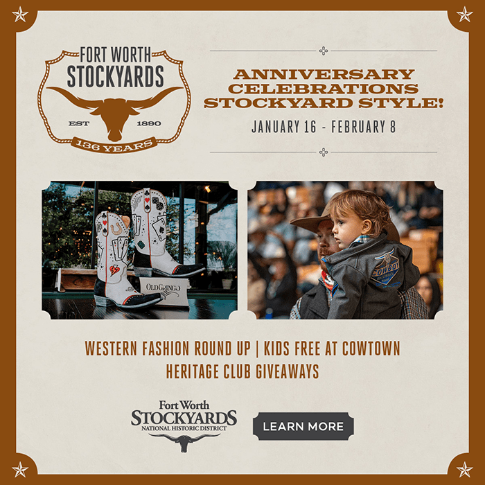 Saddle up with 92.1 Hank FM as we celebrate the 136 years of the LEGENDARY Fort Worth Stockyards! Mosey out January 16th through February 8th for a Western Fashion Round Up featuring trunk shows, happy hours and exclusive sales from over 30 Stockyards retailers. Enjoy exclusive giveaways when you download the Fort Worth Stockyards App. To help celebrate, kids 12 & under get in FREE at Cowtown Coliseum with every paid adult ticket! Stay tuned to 92.1 Hank FM for more exciting news from the Fort Worth Stockyards.