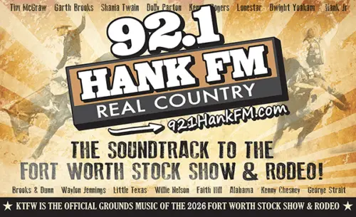92.1 Hank FM is the official ground music of the 2026 Fort Worth Stock Show and Rodeo! As you wander the exhibit halls, livestock barns, and the midway, enjoy REAL COUNTRY from 92.1 Hank FM.