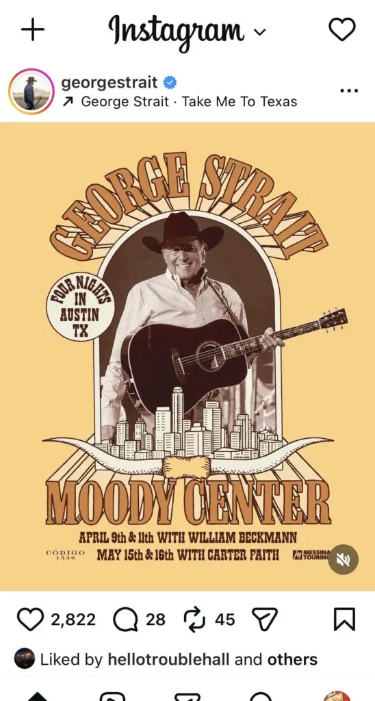George Strait is coming to Austin to play four shows in the round this Spring.  King George announced that he’ll perform concert at the Moody Center on April 9th and 11th with William Beckmann.  Then he’ll return to the Moody Center for two more shows on may 15th and 16th with opening act Carter Faith.