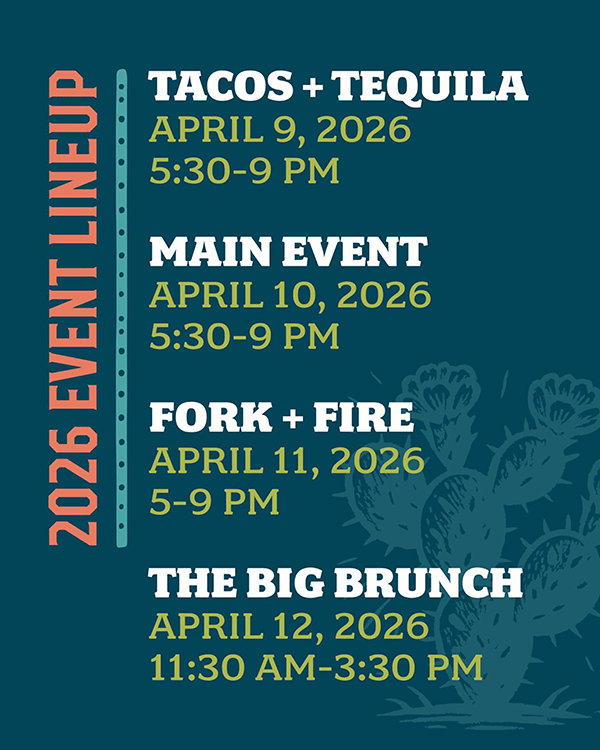 Savor the flavors of Texas as top chefs and acclaimed restaurants from Dallas, Fort Worth, Houston and Austin showcase their signature dishes. Feel the heat of a vibrant live-fire grilling zone, where smoky aromas and sizzling creations fill the air. The night overflows with exceptional food, fine wine, craft beer, and premium spirits, all paired with the energy of two stages featuring talented artists.
